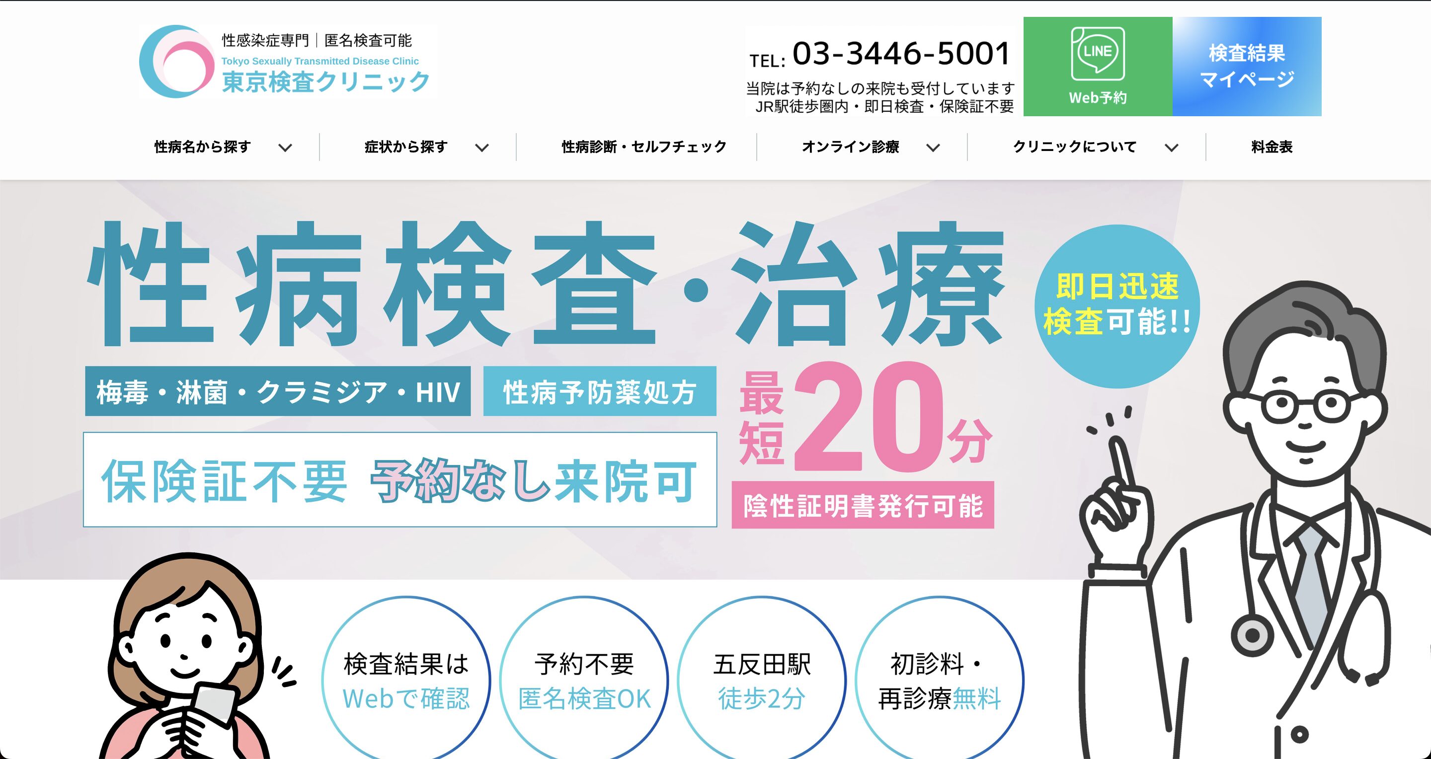 | クリニック名 | 五反田で性病検査なら東京検査クリニック五反田院 |